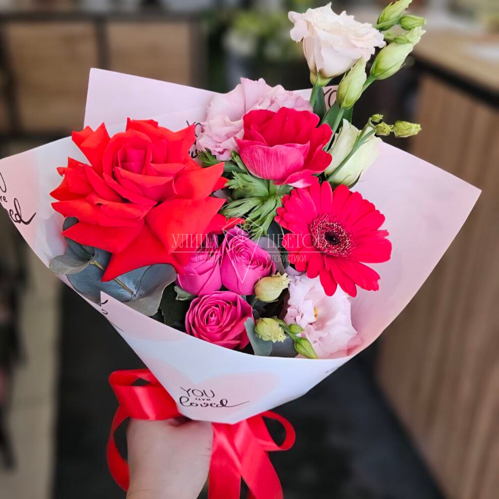 - Розы, Кустовые розы, Герберы, Лизиантусы