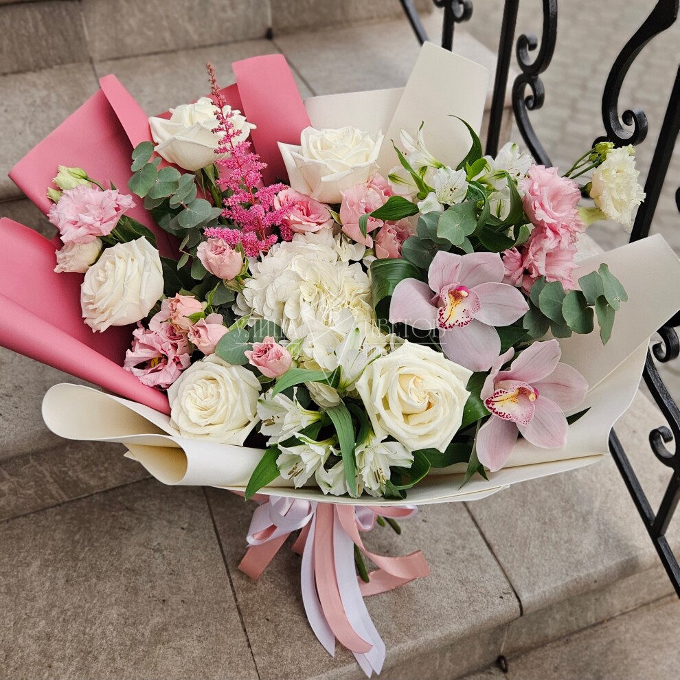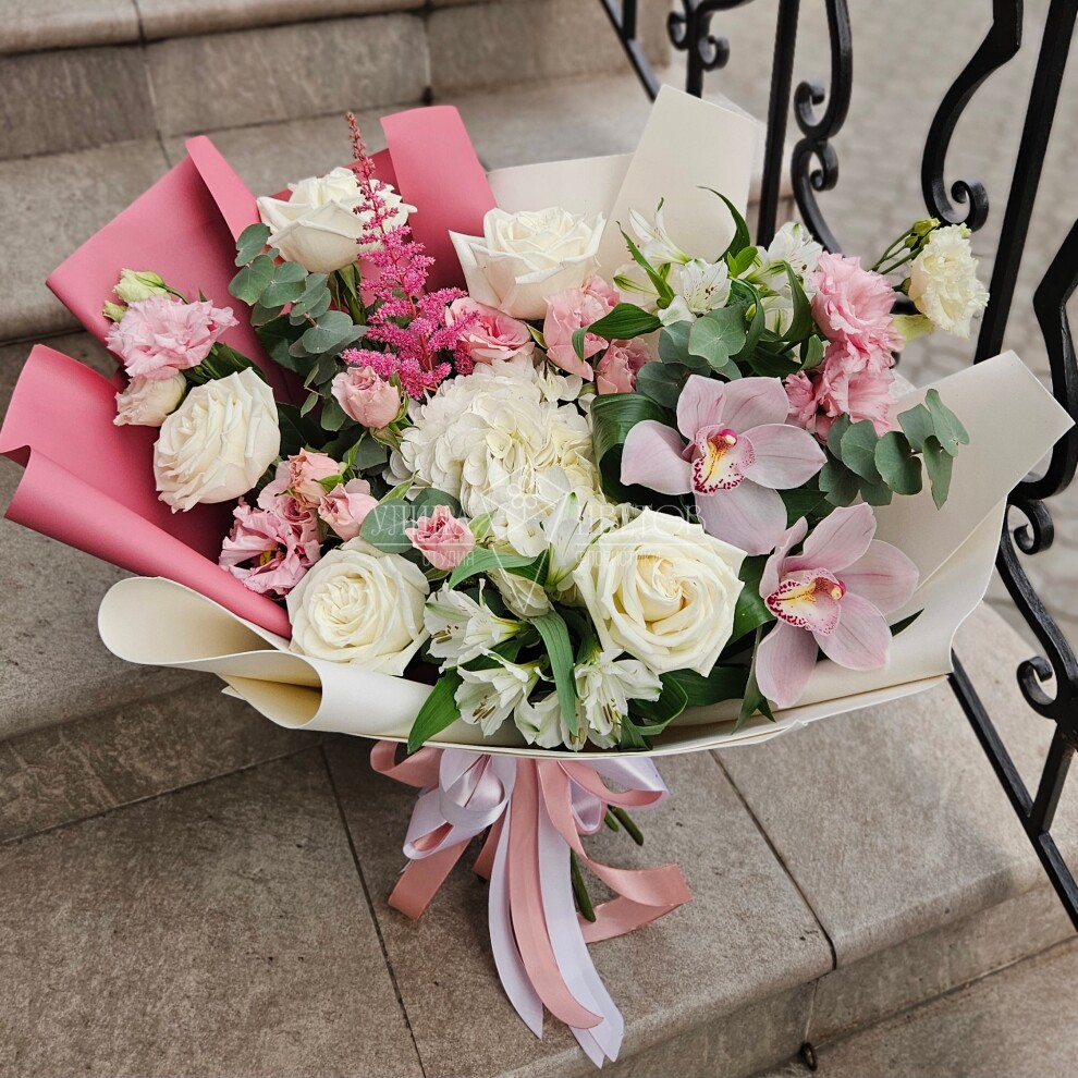 - Пионовидные розы, Кустовые розы, Орхидеи, Гортензии, Лизиантусы