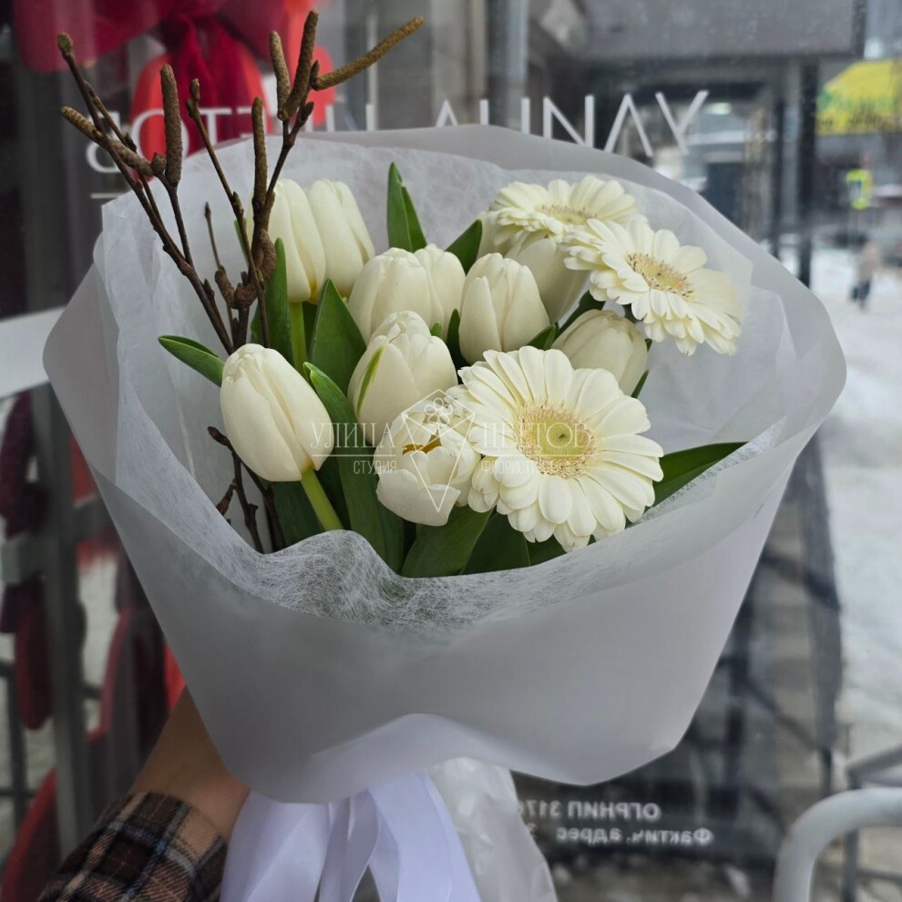 Фото букета перед доставкойПосле сборки заказа, отправим вам фото. Подтверждаете состав или вносите изменения, после чего заказ передаётся в службу доставки.