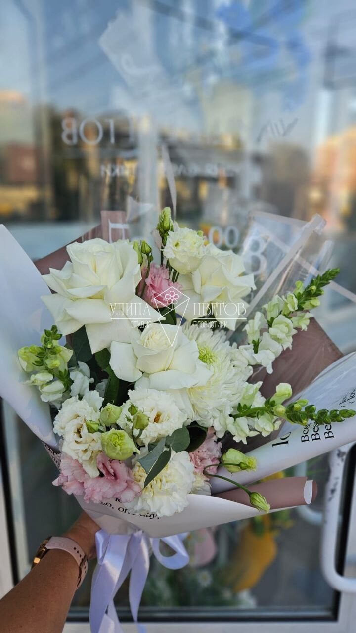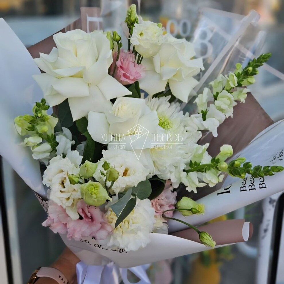 - Пионовидные розы, Хризантемы, Лизиантусы, Леувенбек