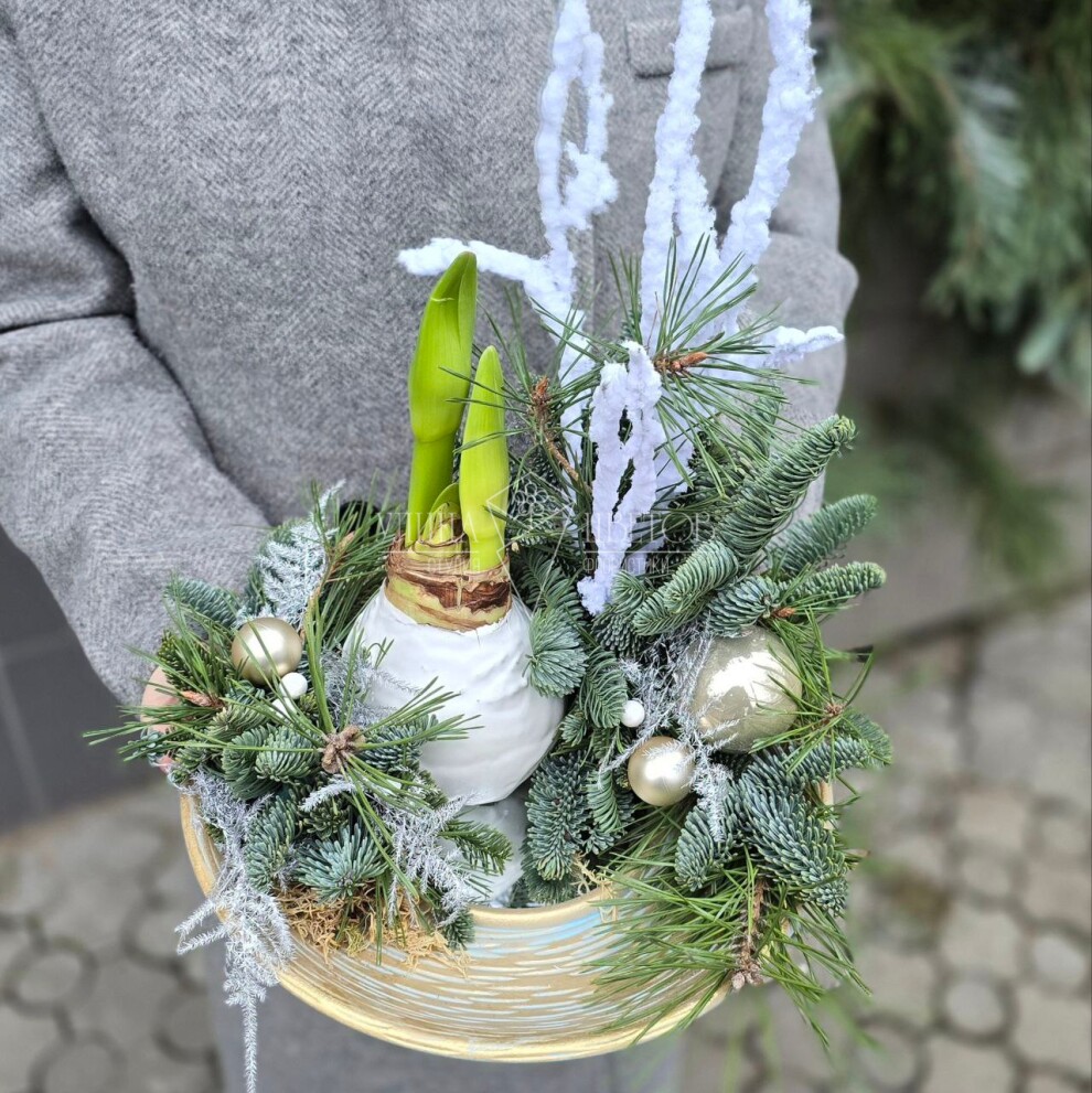 Новогодняя композиция "Луковица амариллиса в белом воске"
