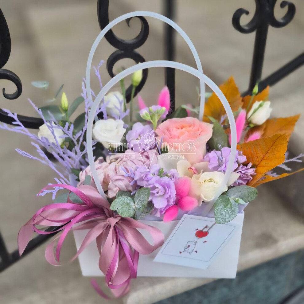 Фото букета перед доставкойПосле сборки заказа, отправим вам фото. Подтверждаете состав или вносите изменения, после чего заказ передаётся в службу доставки.