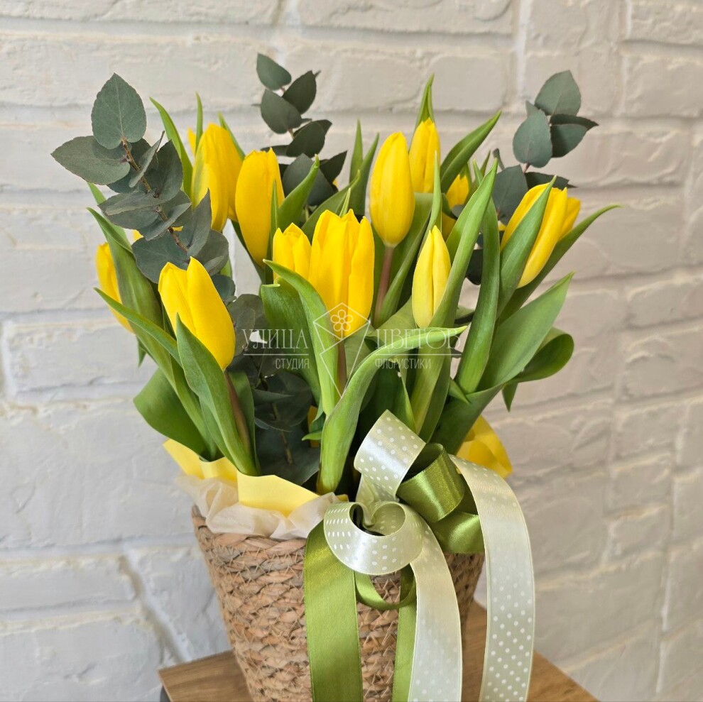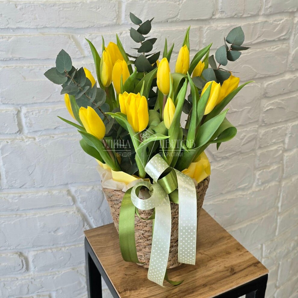 Цветочная корзина "Желтые тюльпаны в кашпо"